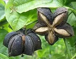 先将种子用洗涤精或洗衣粉洗净,浸泡24小时,将种子放入冰箱冷冻24小时,解冻后将种子与细沙混合在一起,放于干净的地面上摊开晾晒,凉晒松散后,苗床要先浇透高锰酸钾1500倍液消毒,待水渗透后,再将种子撒播在育苗苗床土上,覆盖种子直径厚度的2倍细沙土或蛭石,盆育的要盖一透明度好的玻璃,覆盖上字体均匀的报纸遮阳;苗床育苗的则需覆盖薄膜,高拉遮阳网;一周后小苗出苗整齐,再将玻璃或薄膜拿掉,并逐渐去除遮阳网;待小苗具4真叶较强壮后分苗。小苗分苗后,在室内或棚内培养半个月左右,再将小苗放在通风好的地方3~5天,然后出室炼苗,小苗炼苗半个月以后方可下地定植,定植株行距为25~30cm。