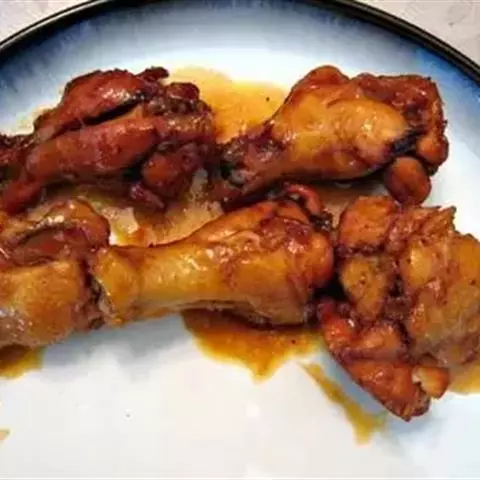 鸡下腿5只(约500克重),干葱2粒,姜汁1汤匙,靓虾酱1匙。糖半茶匙,酒1汤匙,生粉半汤匙配成腌料。