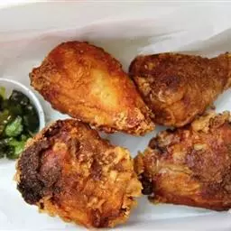 炸鸡腿是以笋鸡腿、鸡蛋、面粉、鸡肉为主要食材,植物油、料酒、盐、湿淀粉量、味精、葱、姜、椒盐为调料炸出来的一种食物。具有色泽金黄艳丽,鸡肉焦嫩适口的特点。