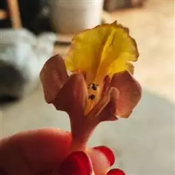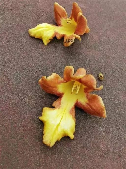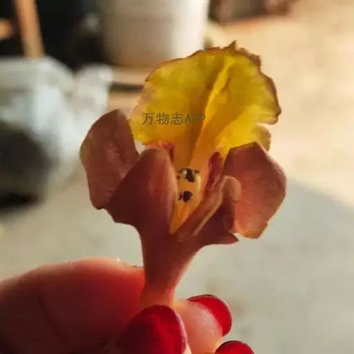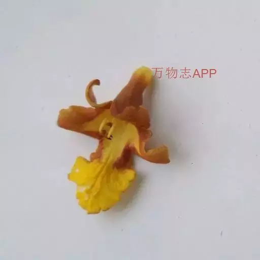 云南石梓 落叶乔木,高达15米,胸径30-50厘米,树干直;树皮灰棕色,呈不规则块状脱落;幼枝、叶柄、叶背及花序均密被黄褐色绒毛;幼枝方形略扁,有棱,老后渐圆,具皮孔,叶痕明显突起。叶片厚纸质,广卵形,长8-19厘米,宽4.5-15厘米,顶端渐尖,基部浅心形至阔楔形,近基部有2至数个黑色盘状腺点,基生脉三出,侧脉3-5对,第3回侧脉近平行,在背面显著隆起;叶柄圆柱形,长3.5-10厘米,有纵沟。聚伞花序组成顶生的圆锥花序,总花梗长15-30厘米;花萼钟状,长约3-5毫米,外面有黑色盘状腺点,顶端有5个三角形小齿;花冠长3-4厘米,黄色,外面密被黄褐色绒毛,内面无毛,两面均疏生腺点,二唇形,上唇全缘或2浅裂,下唇3裂,中裂片长而大,裂片顶端钝圆;雄蕊4,二强,长雄蕊及花柱略伸出花冠喉部;子房无毛,具腺点;花柱疏生腺点,柱头不等长2裂。核果椭圆形或倒卵状椭圆形,长1.5-2厘米,成熟时黄色,干后黑色,常仅有1颗种子。花期4-5月,果期5-7月。