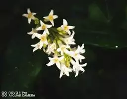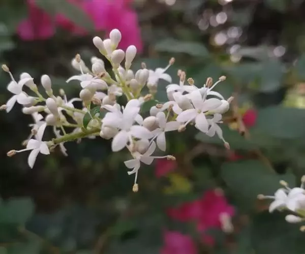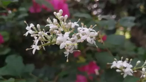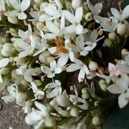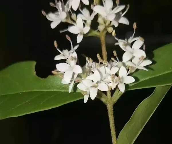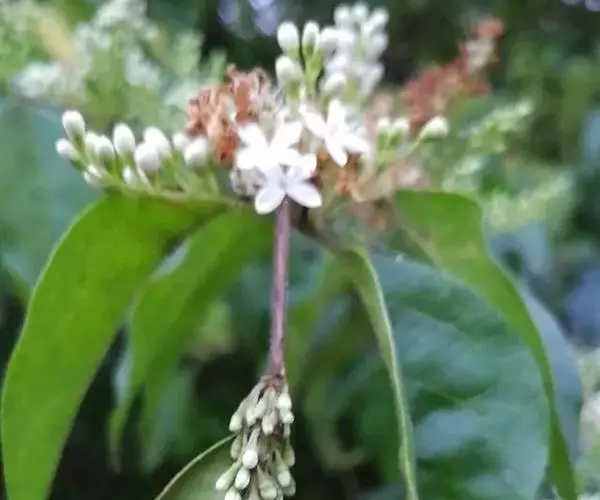花:圆锥花序顶生或腋生,塔形,长4-11厘米,宽3-8厘米;花序轴被较密淡黄色短柔毛或柔毛以至近无毛;花梗长1-3毫米,被短柔毛或无毛;花萼无毛,长1-1.5毫米,先端呈截形或呈浅波状齿;花冠长3.5-5.5毫米,花冠管长1.5-2.5毫米,裂片长圆状椭圆形或卵状椭圆形,长2-4毫米;花丝与裂片近等长或长于裂片,花药长圆形,长约1毫米。