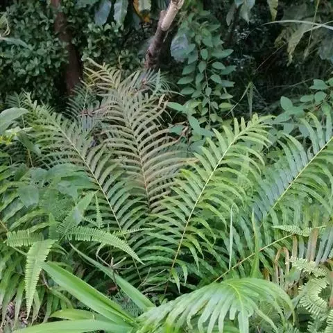 苏铁蕨是乌毛蕨科苏铁蕨属植物。根状茎粗壮,木质,直立圆柱状,直径达15厘米或更粗,…