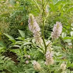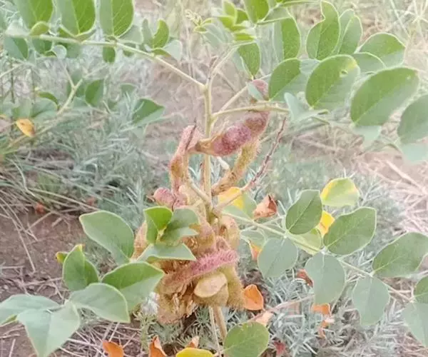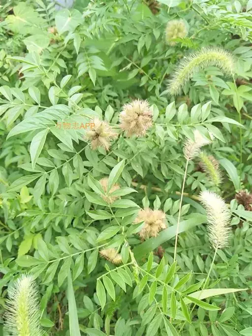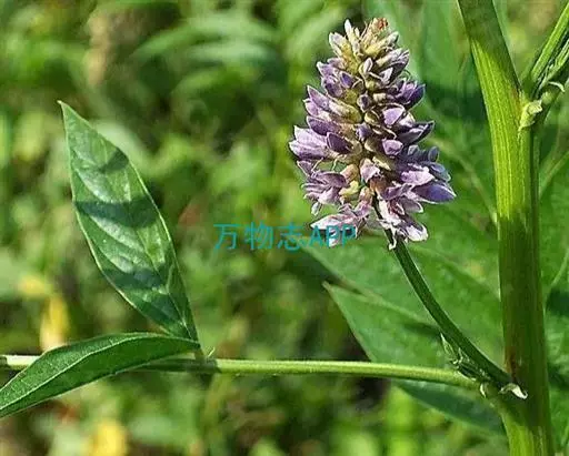 直立属,叶互生,奇数现状复叶,小叶7~17枚,椭圆形卵状,总状花序腋生,淡紫红色,蝶形花。长圆形夹果,有时呈镰刀状或环状弯曲,密被棕色刺毛状腺毛。扁圆形种子。