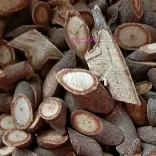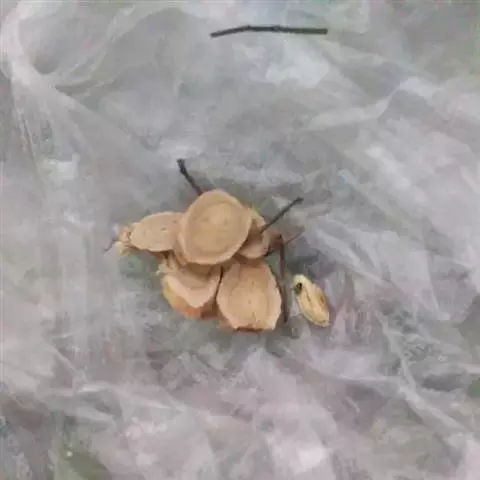 野生灰皮甘草切片 (1)本品横切面:木栓层为数列棕色细胞。皮层较窄。韧皮部射线宽广,多弯曲,常现裂隙;纤维多成束,非木化或微木化,周围薄壁细胞常含草酸钙方晶;筛管群常因压缩而变形。束内形成层明显。木质部射线宽3~5列细胞;导管较多,直径约至160微米;木纤维成束,周围薄壁细胞亦含草酸钙方晶。根中心无髓;根茎中心有髓。粉末淡棕黄色。纤维成束,直径8~14微米,壁厚,微木化,周围薄壁细胞含草酸钙方晶,形成晶纤维。草酸钙方晶多见。具缘纹孔导管较大,稀有网纹导管。木栓细胞红棕色,多角形,微木化。