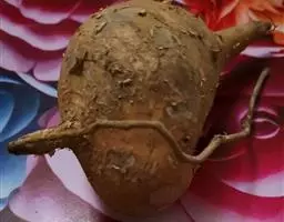 多年生草本,根与根状茎粗状,直径1-3厘米,外皮褐色,里面淡黄色。具甜味。