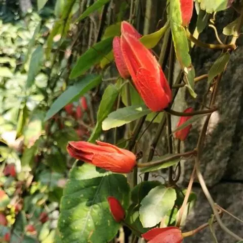 红花西番莲 是西番莲科、西番莲属多年生草质藤本,茎圆形,具卷须,长6-8米。叶互生,长圆形至长卵形,…