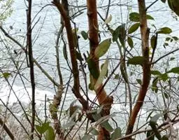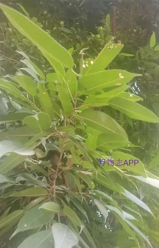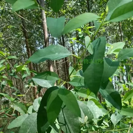 密荫大乔木,高20米;树皮宿存,深褐色,厚2厘米,稍软松,有不规则斜裂沟;嫩枝有棱。幼态叶对生,叶片厚革质,卵形,长11厘米,宽达7厘米,有柄;成熟叶卵状披针形,厚革质,不等侧,长8-17厘米,宽3-7厘米,侧脉多而明显,以80度开角缓斜走向边缘,两面均有腺点,边脉离边缘1-1.5毫米;叶柄长1.5-2.5厘米。