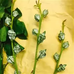 危害症状:病菌侵染插条嫩叶,迅速从上而下变黑干枯;若从切口处侵入,则从下向上腐烂,表皮剥离。但也有些插条感染后只导致部分损伤,并形成愈伤组织,阻止病菌蔓延,长出根系,地上部亦能抽芽展叶。病菌若从叶痕、芽鳞或微伤处侵入,则出现不规则斑点,病斑扩展连结,茎条干枯。染病的插条后期长出白色霉点或灰褐色点状物,即为病原菌的子实体。