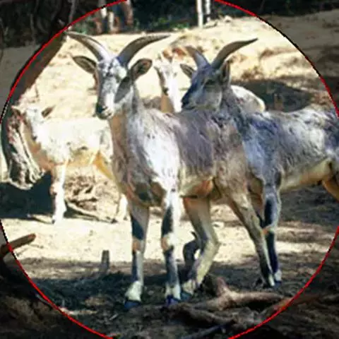 盘羊:雄性肩高可达120厘米,体重可达200千克。雄性的弯角粗大,长达1米以上,向下扭曲呈螺旋状,…