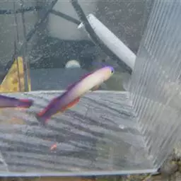 (4)苗种培育及水质调控:开始投喂洄水、丰年虫无节幼体及60目网过滤的小型水蚤,1周后投喂大型水蚤、水蚯蚓,当仔鱼长到 4~5 厘米时,可开始投喂粉碎后的小鱼小虾或人工配合颗粒饲料,投喂量掌握在以 90%以上的鱼吃饱游走为宜,每天投喂4~6次。培育仔鱼期间,要做到勤排污,用吸管吸出缸底积粪、残饵等污物和下层水,但应注意每次换水量不宜过大,换水量为 1/3~1/2,加水的水温与缸池的水温尽可能一致,最大温差不要超过1.5℃,以保持水温的稳定。饲养期间,要经常观察鱼的活动情况和摄食情况,定期进行消毒,预防疾病发生,及时分缸、分池,大小分开饲养,避免相互残杀。地图鱼性情较为凶猛,适宜单养。随着个体的增大,尽可能安排在室外大池进行饲养,这样,一是生长速度明显快于室内,放养密度可加大;二是体色更为绚丽多彩,同时也提高了经济价值和观赏价值。