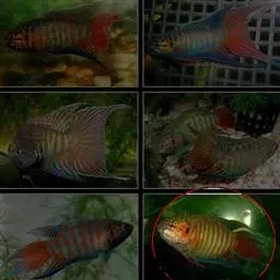 地图鱼 12 个月龄左右即可达到性成熟,但作为繁殖用的亲鱼以选择 1.5 龄最为理想。体长 30厘米以上、体重500克以上的个体为好。要求形态标准、体表光滑、鳞片、鳍条完整、色泽鲜艳、图案完整、体质健壮、无病无伤、性腺发育良好,雄鱼色泽鲜艳,雌鱼腹部膨大。