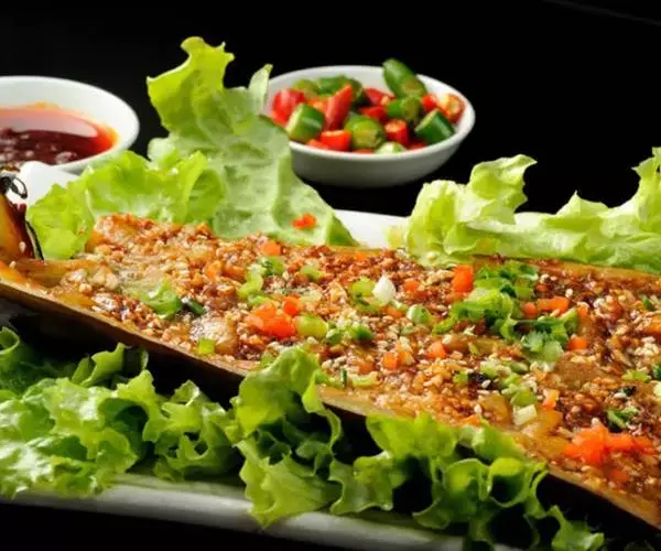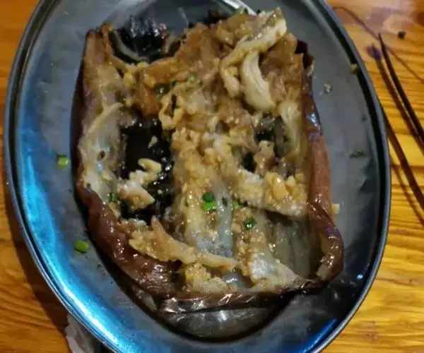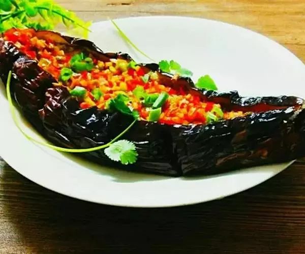 这是一道以茄子、剁椒、大蒜、孜然粉为主要食材进行烤制而成的一道菜品。