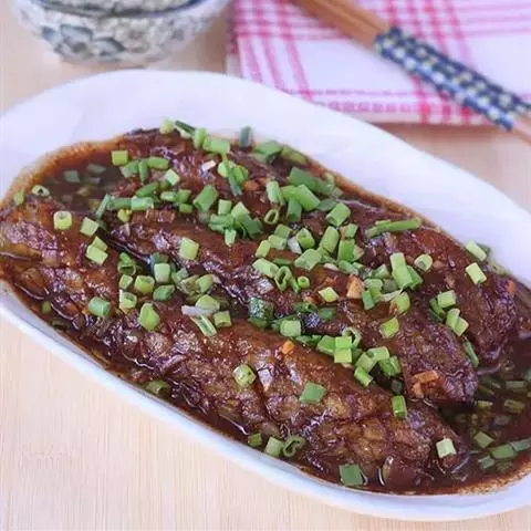 酱扒茄子是一道特色传统佳肴。因为大酱里有淀粉、茄子上也有淀粉,所以最后不用水淀粉勾芡,汤汁也很浓稠…