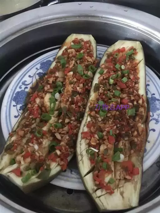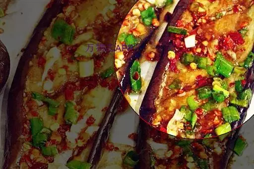2、也可以先用蒸锅将茄子蒸稍微软一点,吃的时候刷上油用刀划开铺上肉馅烤一下;