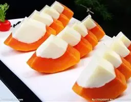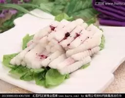 (2)把茄子肉切成段,装盆,撇上木鱼花,配以生姜泥和黄瓜。
