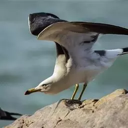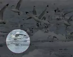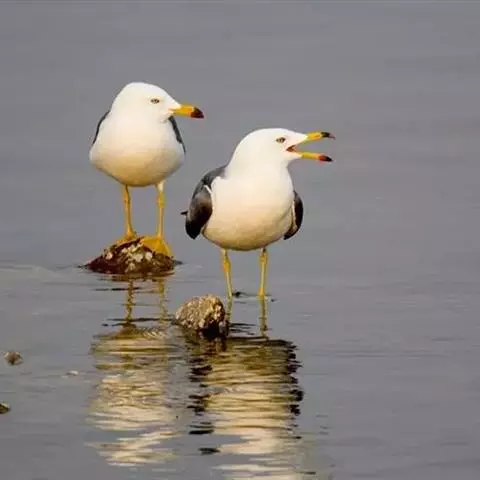 灰翅鸥(学名:Larus glaucescens),夏羽头、颈、腰、尾白色;肩、背和翅上覆羽鸽灰色。冬羽和夏羽相似,但头和颈具淡褐色纵纹,有时扩展至上胸。嘴黄色,下嘴先端具红斑;幼鸟嘴黑色。脚粉红色。栖息于海岸:悬岩,海滨沙滩于近海海岛上。常成对或成小群活动。主要食鱼、虾、甲壳类、软体动物等水生脊椎和无脊椎动物。通常营巢于人迹罕至和难于到达的海岸悬岩上,也营巢于平坦的海滨沙滩。巢主要由水生植物和枯草构成,内垫有羽毛。