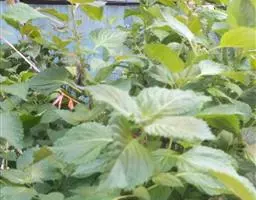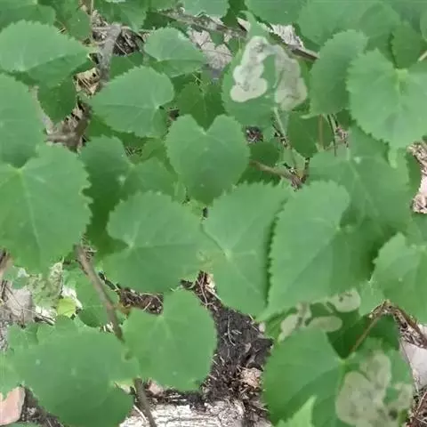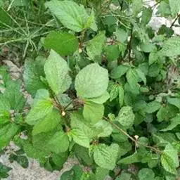 略直立或匍匐状半灌木,长达1米,多分枝,小枝密被短柔毛。叶卵形或长椭圆状卵 形,长2.5-4.5厘米,宽1.5-3厘米,顶端钝,基部圆形或浅心形,边缘有小齿,两面均密被短柔毛;叶柄长0.5-1厘米。