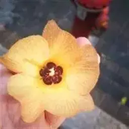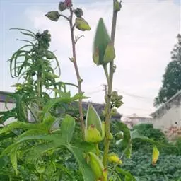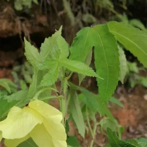 黄蜀葵 Medicus),是锦葵科秋葵属一年生或多年生草本。全株疏被长硬毛;叶近圆形,…