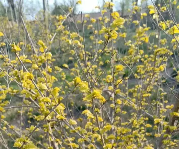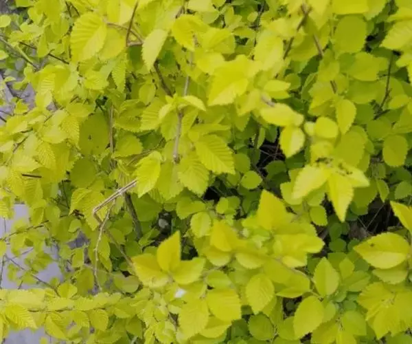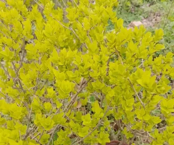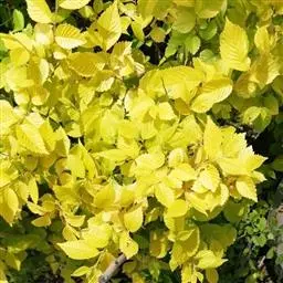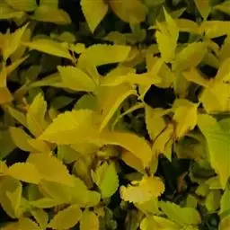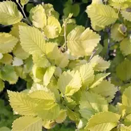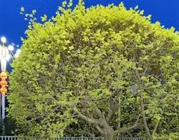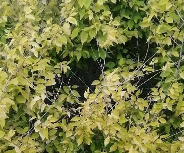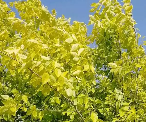中华金叶榆,榆科榆属,系白榆变种。叶片金黄色,有自然光泽,色泽艳丽;叶脉清晰,质感好;叶卵圆形,平均长3-5cm,宽2-3cm, 比普通白榆叶片稍短;叶缘具锯齿,叶尖渐尖,互生于枝条上。金叶榆的枝条萌生力很强,一般当枝条上长出大约十几个叶片时,腋芽便萌发长出新枝,因此金叶榆的枝条比普通白榆更密集,树冠更丰满,造型更丰富。
