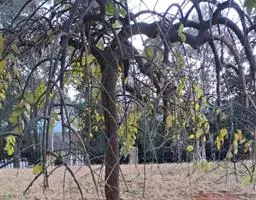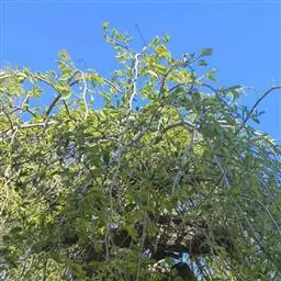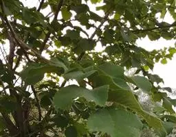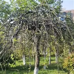 树皮暗灰色,粗糙,不规则纵裂。幼树枝条直立,且被白色毛;老树枝条先端下垂,有时木栓质发达成为瘤状。…