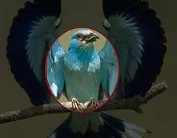雌鸟前额锈褐色,头顶橄榄褐色或褐灰色,头顶后部到后颈逐渐变为蓝灰褐色,颊、眼先、耳覆羽和头侧褐色或茶黄褐色、具细的白色羽轴纹。背、肩、腰和尾上覆羽赭褐色,中央尾羽深棕色,外侧尾羽和飞羽褐色,羽缘深棕色,颈侧有一鲜蓝色块斑。颏、喉和上胸淡皮黄色,其余下体淡红橄榄褐色,腋羽和翅下覆羽皮黄色。
