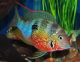 眼点丽鱼又称皇冠三间、孔雀鲈,为鲈形目,慈鲷科,丽鱼属一种淡水鱼类。…