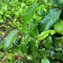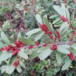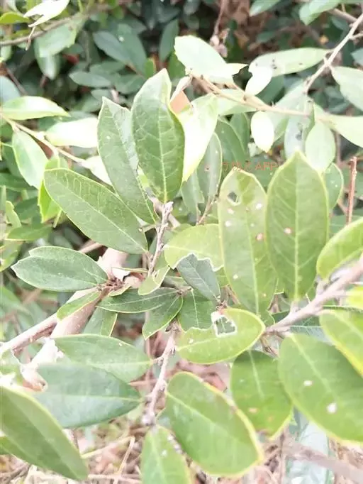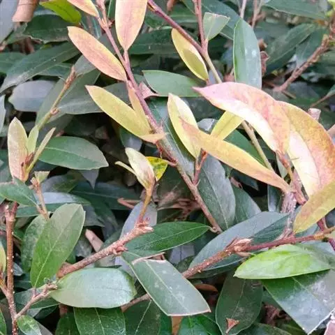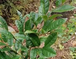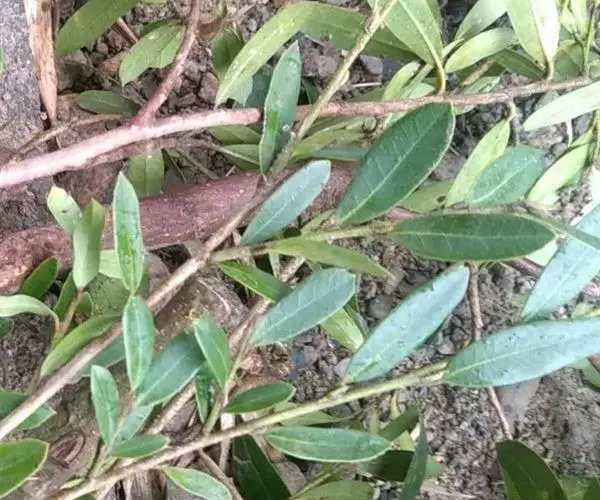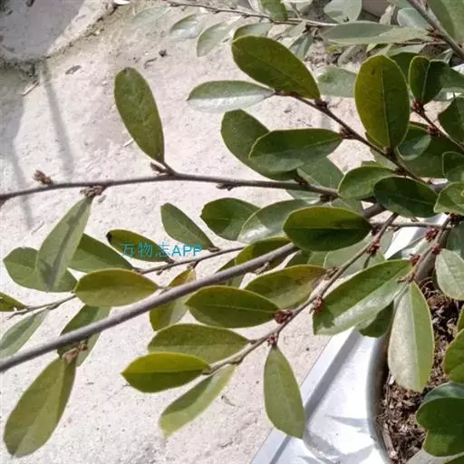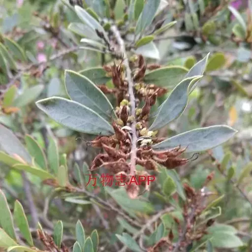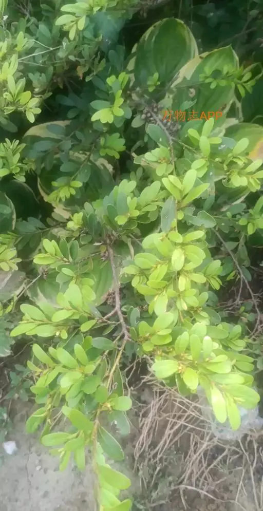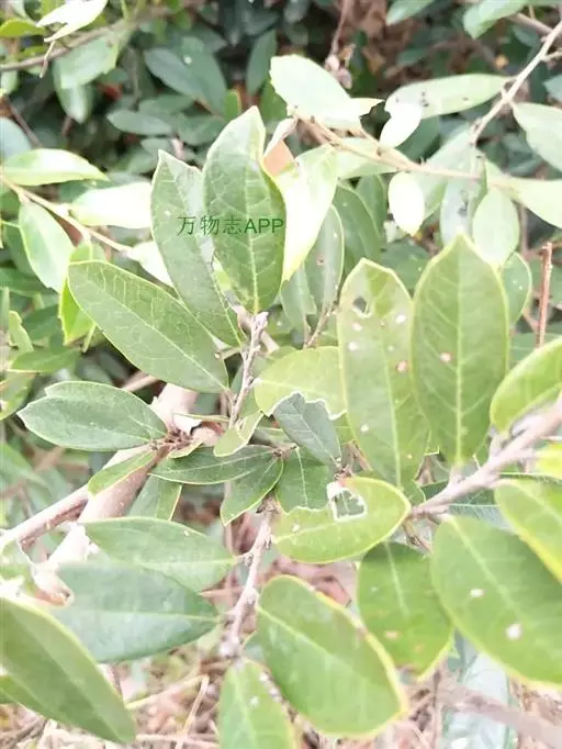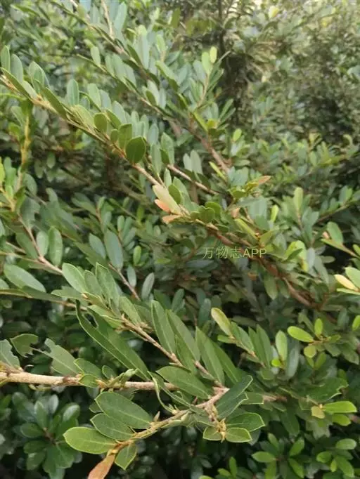 常绿灌木高1-2米;嫩枝秃净或略有柔毛,纤细,节间长1-2.5厘米;老枝无毛,有皮孔,干后灰褐色;芽体有褐色柔毛。叶薄革质,倒披针形或矩圆状倒披针形,长3-5厘米,宽1-1.5厘米,先端锐尖,基部狭窄下延;上面绿色,干后暗晦无光泽,下面秃净无毛,干后稍带褐色;侧脉4-6对,在上面不明显,在下面略突起,网脉在两面均不显著;边缘无锯齿,仅在最尖端有由中肋突出的小尖突;叶柄极短,长不到1毫米,无毛;托叶短小,早落。