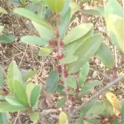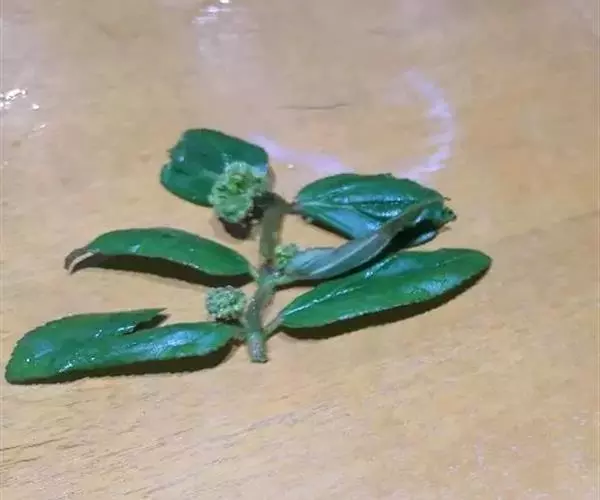 雌花或两性花的穗状花序腋生,长1-3厘米,花序轴有毛,苞片线状披针形,长2-3毫米;萼筒极短,萼齿披针形,长2毫米,雄蕊未见;子房有星毛,花柱长5-6毫米。蒴果卵圆形,长7-8毫米,有褐色星状绒毛,先端尖锐,宿存花柱长1-2毫米。种子褐色,长4-5毫米,发亮。