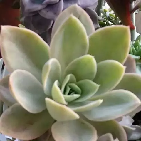• 吉娃莲,景天科拟石莲花属,别名:吉娃娃,吉娃莲,植株小型,无茎的莲座叶盘非常紧凑。卵形叶较厚,带小尖,…