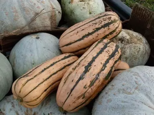 底部为深绿色,上方为橙黄色,并有淡黄色条纹相间,嫩瓜可食用,老熟