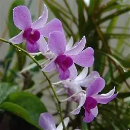 美花石斛是兰科石斛属多年生草本。茎柔弱,斜立或下垂,呈细圆柱形,有时分枝;叶互生于茎上,…