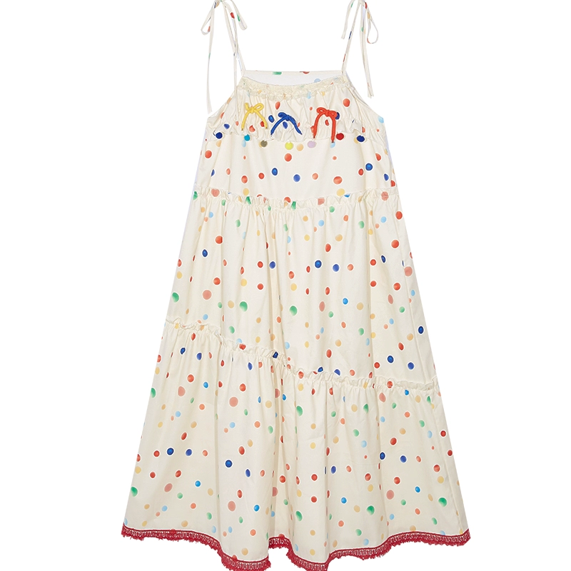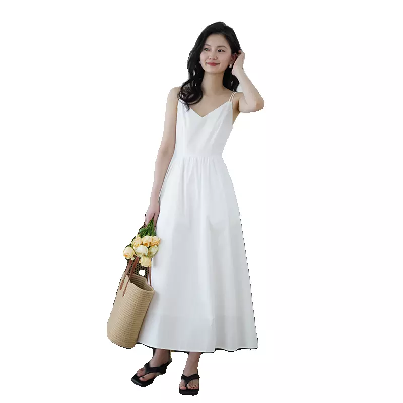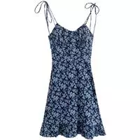 吊带连衣裙,和背带裙不同,背带一般者较宽长,并在背后打衩,而吊带裙较窄短。吊带裙一般在腰节以上部位都有一段护胸和护背的衣料。在盛夏季节穿着凉快、舒适,除了女童以外,成人也穿着,现代比较流行。