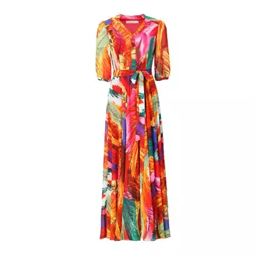1956年,英国大师理查德·汉密尔顿,用图片拼贴手法完成了被认为是第一件真正意义上的波普艺术作品,题目叫做"今天的生活为什么如此不同,如此富有魅力?"从此波普时装艺术的发展正式起步,并且逐渐成为当今年轻人的时尚游戏。以炫目的色彩表现张扬的个性,将日常实物移位拼贴,这些都是波普艺术乐此不疲的表现方式。连衣裙无疑为这一风格的运用提供了最大面积的创意空间,设计师们将本季的连衣裙当作尽情发挥的画布,看似打翻的色彩,其实蕴含百看不厌的精美。