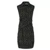 黑色带小圆点的合体连衣裙在裙摆处添加雪纺面料的荷叶边更有女人味儿,系带的针织短上衣束出纤细腰身。