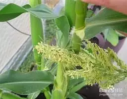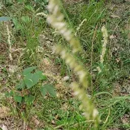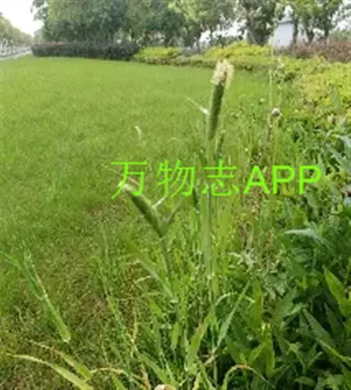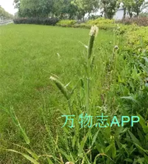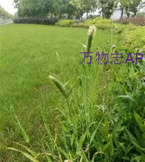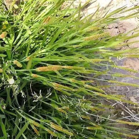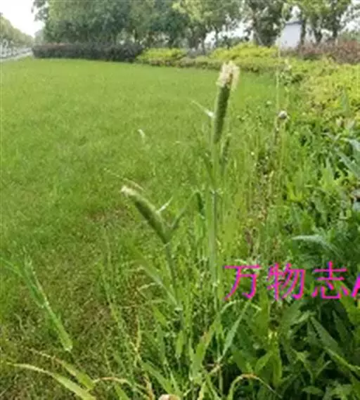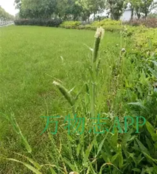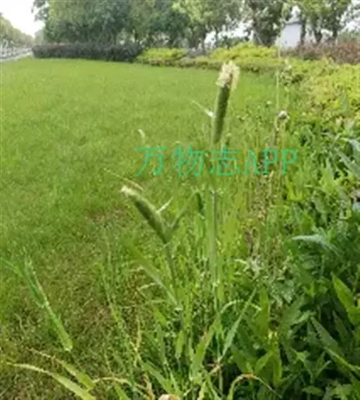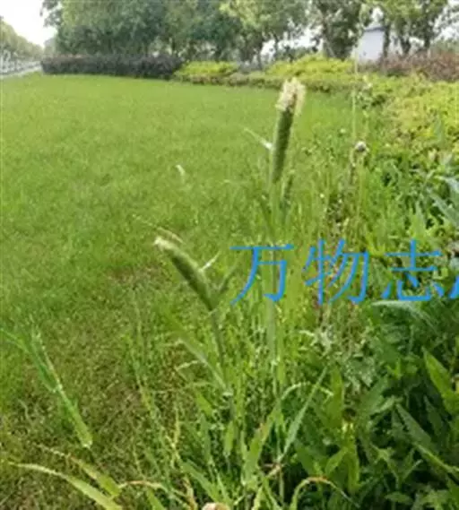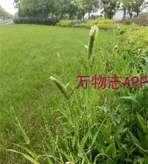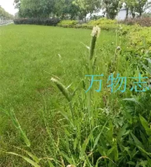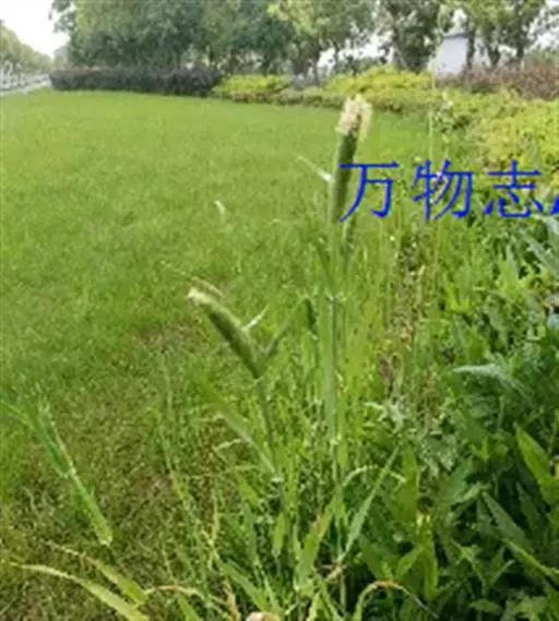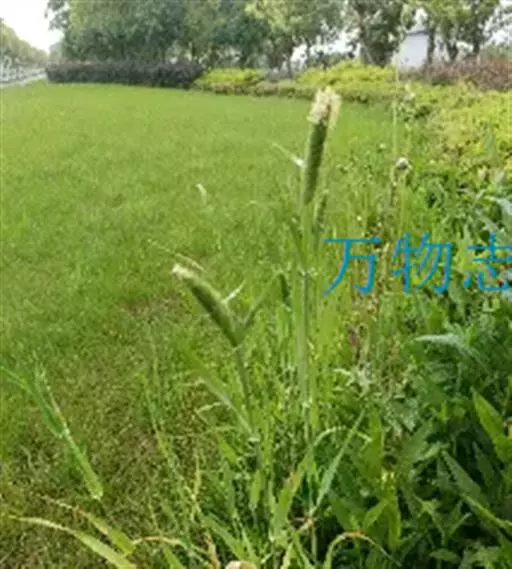 圆锥花序长圆状圆柱形,长2.5-7厘米,宽6-10毫米,灰绿色或成熟后黑色;小穗长4-5毫米,卵形;颖基部约1/4互相连合,顶端尖,稍向外张开,脊上具纤毛,两侧无毛或疏生短毛;外稃较颖短,先端钝,具微毛,芒近于光滑,约自稃体中部伸出,长1-5毫米,隐藏或稍露出颖外;雄蕊3,花药黄色,长2.5-3毫米。花果期7-9月。