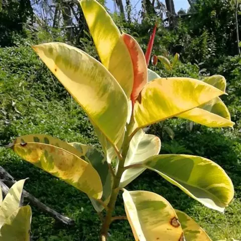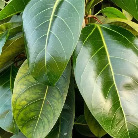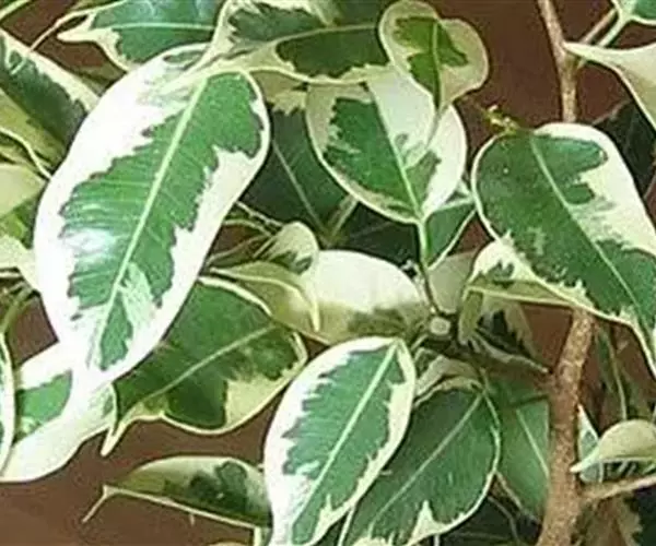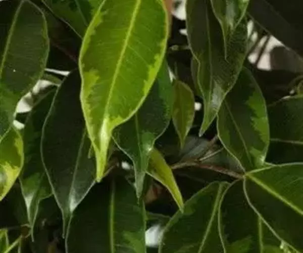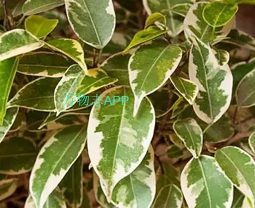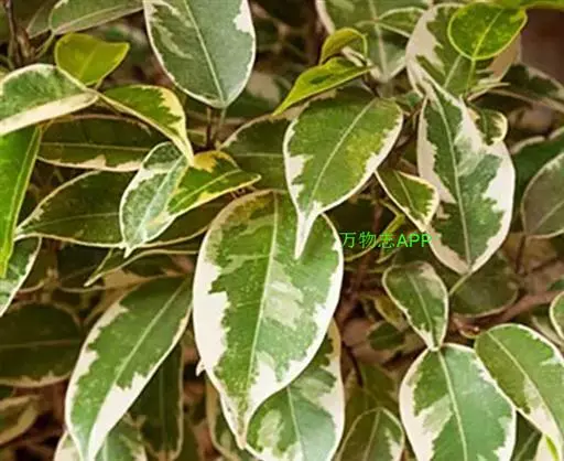 花叶垂榕为常绿灌木,株高l米至2米,分枝较多,有下垂的枝条,叶互生,阔椭圆形,革质光亮,全缘,淡绿色,叶脉及叶缘具不规则的黄色斑块。叶柄长,托叶披针形。全株具乳汁。