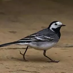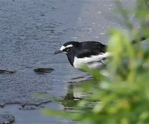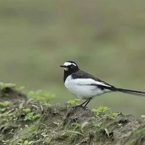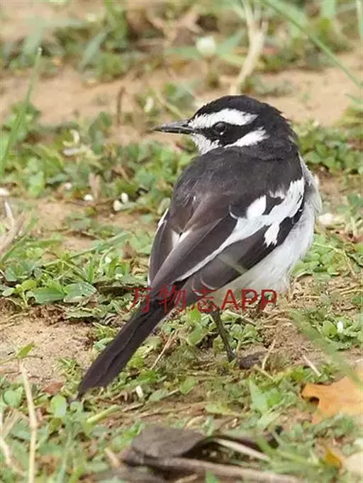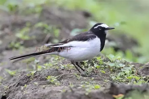 日本鹡鸰(学名:Motacilla grandis):体长约20厘米。上体多黑色,额、颏及眉纹白,下体白,两翼黑而具白色横斑及羽缘,尾黑而边缘白色。虹膜深褐色;嘴黑色;脚黑色。飞行时发出嘁喳声,具复杂而独特的鸣声。