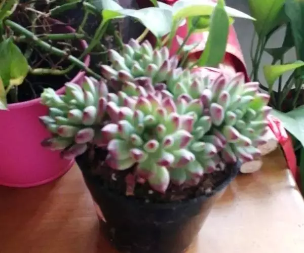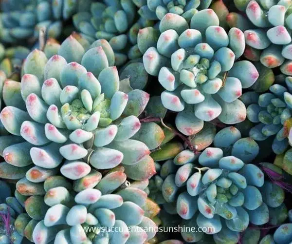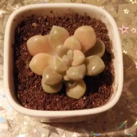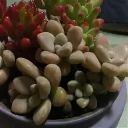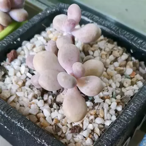蓝豆(学名:Graptopetalum pachyphyllum Rose)是景天科、风车草属的多年生植物,多肉植物。植株叶片覆白粉,呈淡蓝色,在温差大、日照充足的环境下叶泛橙色或粉紫色。花五瓣,底色白,有红色斑纹。墨西哥多地有分布,广泛栽培于世界各地。
