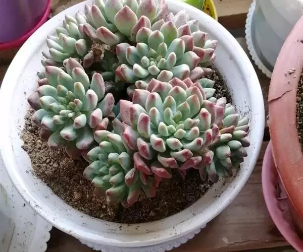 种植养护: 1.修根 景天科植物到手后,均需要修根,一般而言,须根全部除去,留下主根即可。其中石莲花是比较强健的品种,不修根也没有关系。 2.晾干 一般晾干2-5天即可种植。当然了,有经验的花友知道,最安全的办法是一直将植物放置在阴凉通风处,不需要种植,大概2-3周之后,景天植物会在空气中自然萌发出根系,这时候种植下去,成活率是接近百分之百的。期间,不用担心植物干渴而死,即使植物缩水厉害,还是可以恢复的。