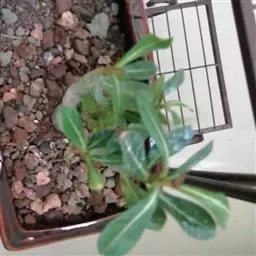 叶片长圆型,环状对生,叶片先端微尖,叶色在强光与昼夜 温差大或冬季低温期叶色会变的非常漂亮的蓝白,叶尖常年轻微红褐色,弱光则叶色浅蓝,叶片变的窄且长,枝条也容易徒长。