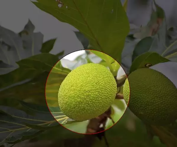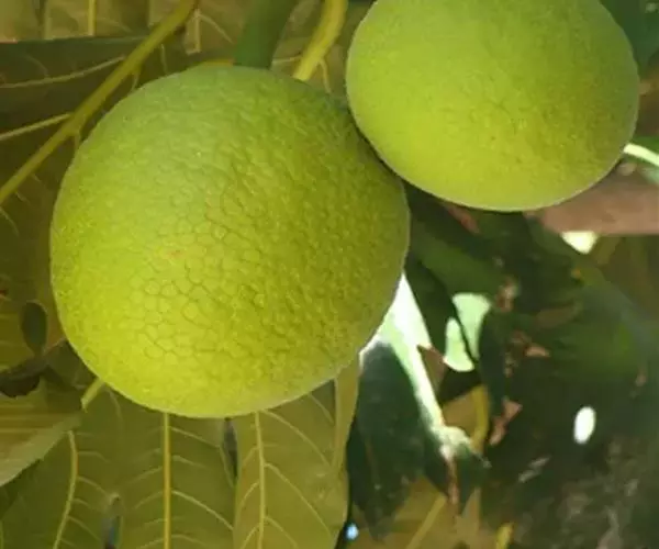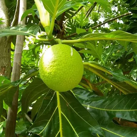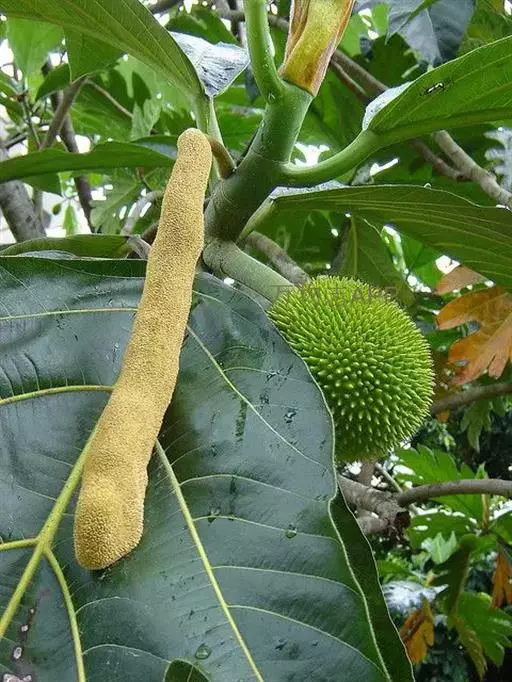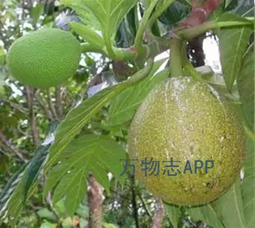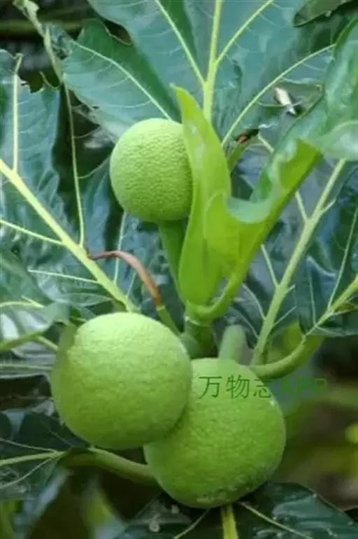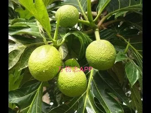 面包树是一种木本粮食植物,果实富含淀粉,烧烤后可食用。烤制过的面包果,味如面包,松软可口,酸中有甜,常被用作口粮。可以烤食。
