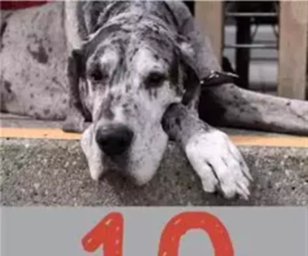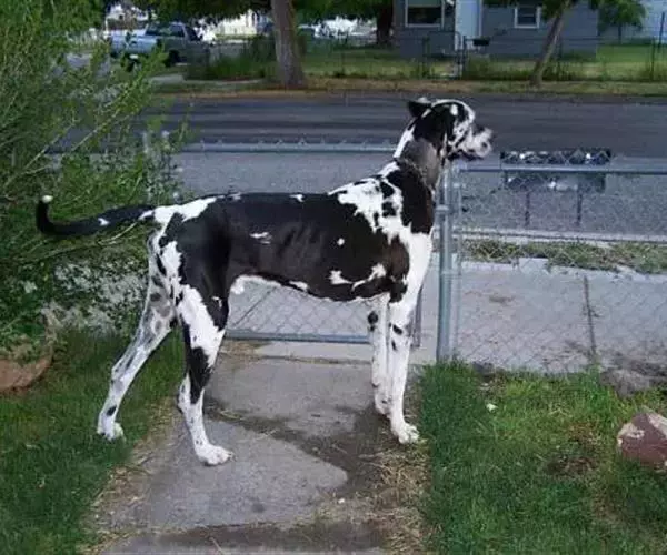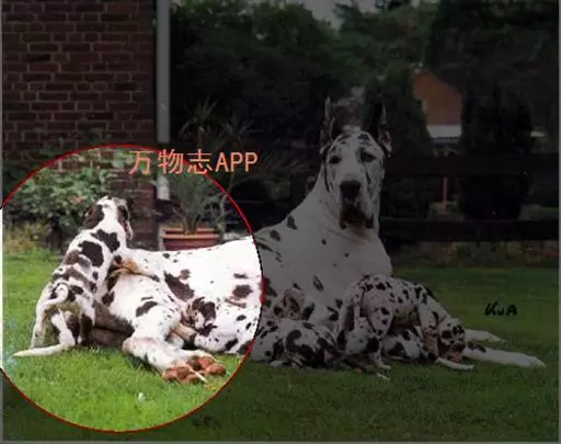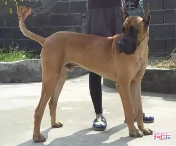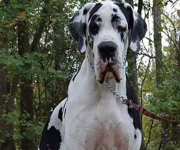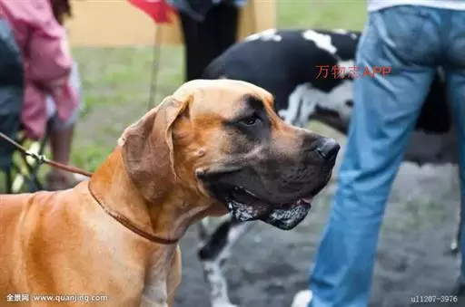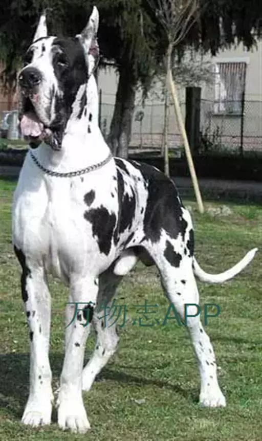 大丹犬也称做大丹狗、德国獒曾被欧洲王室及贵族饲养,是贵族身份地位的象征,体高一般为70~90公分,体重为50~70公斤。毛短厚而富有光泽,头大而窄长,毛呈黄褐、虎斑、蓝色,黑色或黑白花色等。