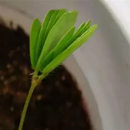 芽苗直立,苗高10~15 cm,半软化型产品芽苗较高,浅黄绿色,顶部复叶始展开;绿化型产品芽苗较粗壮,绿色,顶部复叶充分展开。