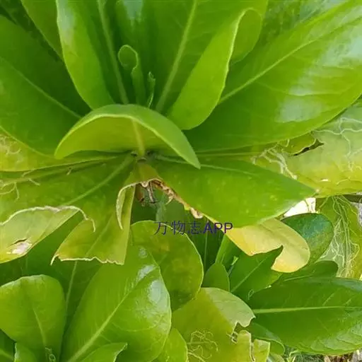 叶螺旋状排列,大部分集中于分枝顶端,颇象海桐花,无柄或具短柄,匙形至倒卵形,长10-22厘米,宽4-8厘米,基部楔形,顶端圆钝,平截或微凹,全缘,或边缘波状,无毛或背面有疏柔毛,稍稍肉质。
