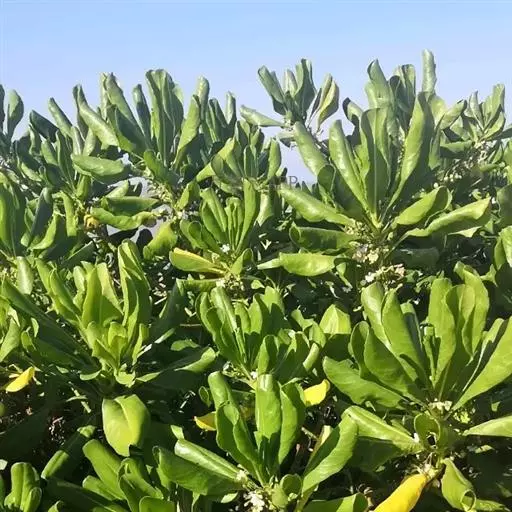 草海桐(Scaevola sericea Forst. F. ex Vahl)也称为:羊角树、水草仔、细叶水草,是草海桐科多年生常绿亚灌木植物,是典型的滨海植物,它们总是喜欢倚在珊瑚礁岸或是与其他滨海植物聚生于海岸边,迎着大海生长,被人们形容为滨海的草根阶层。