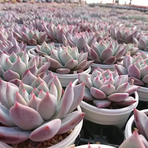 女雏是景天科石莲花属的多肉植物。特征是小巧的株形和橙粉色叶缘。极易生侧芽,…