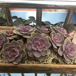 紫珍珠是景天科石莲花属的多年生肉质草本植物。植株中小型;叶片肉质,匙形,呈莲座状紧密排列;叶片粉紫色,…