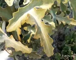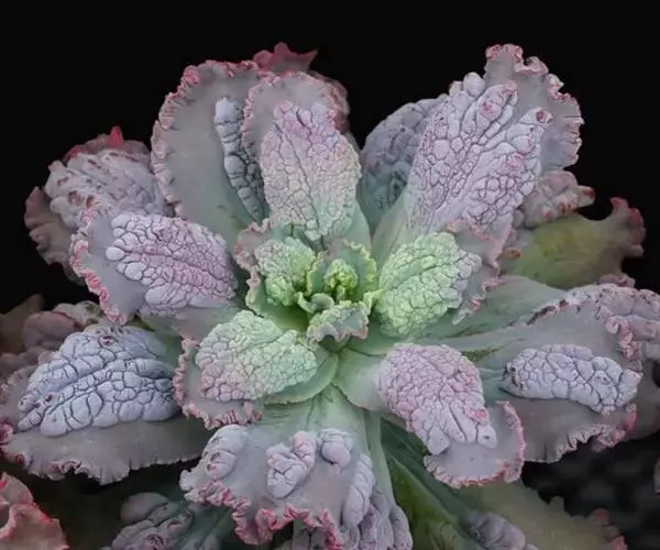狂野男爵是中大型园艺变种,植株看起来是真的恶心,且怎么养都会长高的品种。狂野男爵植株的茎部较粗壮,随着生长而逐渐伸长长高。叶片莲座型密集排列,株径可达20厘米以上。叶片长圆形,叶片有点波浪状,植株的叶面大面积凸起不规则疣凸,叶色为浅绿至紫红,新叶色浅、老叶色深。强光与昼夜温差大或冬季低温期叶色绿至紫红,叶尖和叶缘轻微发红,老叶和叶片的疣凸会紫红,弱光则叶色浅绿,叶片变的窄且长,也会非常薄。狂野男爵叶面上覆有微白粉,老叶白粉掉落後呈光滑状,生长中的狂野男爵老叶片容易轻微下翻。