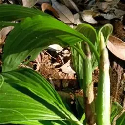 无叶美冠兰 J.J.Sm.):腐生植物,无绿叶。假鳞茎块状,近长圆形,淡黄色,有节,位于地下。…
