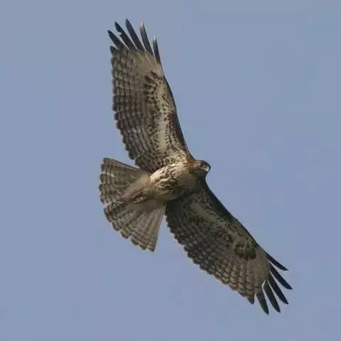 褐耳鹰的体形比苍鹰要小得多,为小型猛禽,体长为31-44厘米,体重217-325克。上体灰色,…